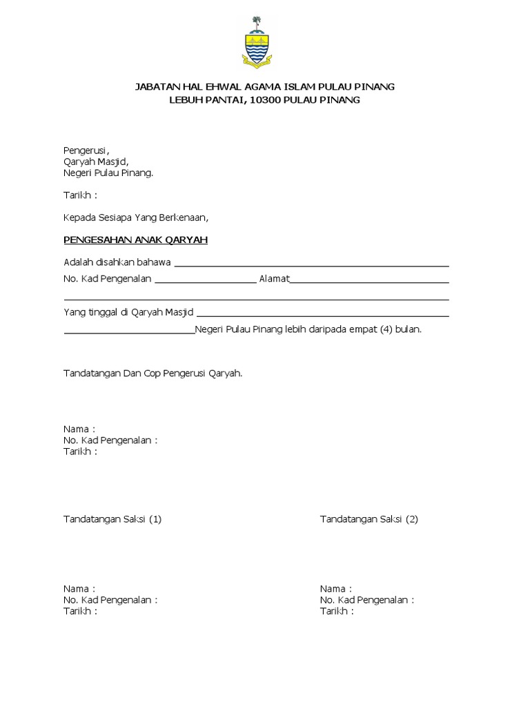 Disebabkan kad pengenalan beliau masuk mempunyai status Islam anak-anak beliau juga mempunyai sijil kelahiran berstatus agama Islam. Mesyuarat Jawatankuasa Fatwa Negeri Pulau Pinang Bil. Kad PengenalanDokumen Lain Pemohon 3.